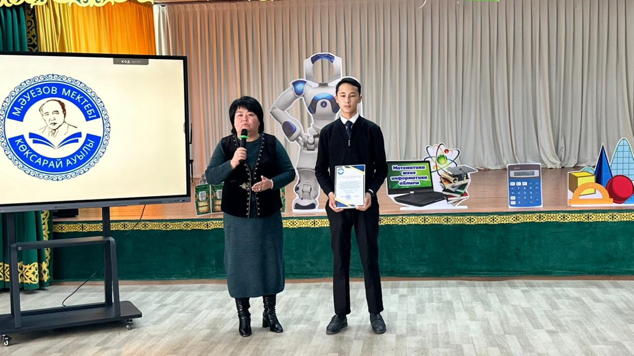"М.Әуезов атындағы жалпы білім беретін мектеп"коммуналдық мемлекеттік мекемесінде математика және информатика пән бірлестігінің ұйымдастыруыме «Жасанды интеллект: математикалық логика, цифрлық болашаққа» атты айлық іс-шара өтті. Айлық барысында ашық сабақтар, түрлі іс-шаралар, шеберлік сабақтар, байқаулар мен олимпиадалар өткізілді. Оқушылар жасанды интеллект пен математикалық логиканың негіздерін меңгеріп, өздерінің шығармашылық және зерттеушілік қабілеттерін көрсетті.